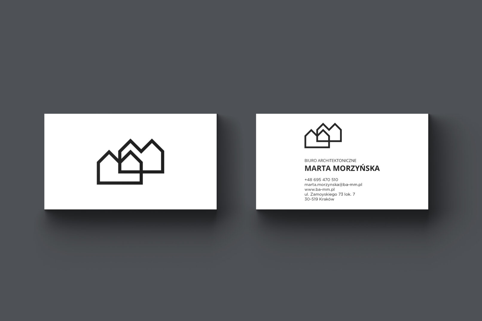 Identyfikacja wizualna biura architektonicznego BAMM, zaprojektowaliśmy logotyp, wizytówki oraz papeterię.